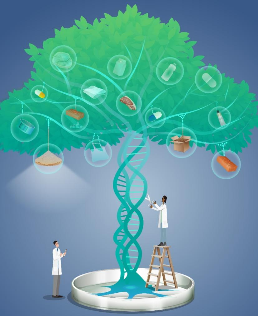 随着技术进步,人类获取和使用生物质的方式也在不断升级。尽管从自然界提取所需生物质的方式简单直接,然而对于低天然产量的部分材料物质(如提取每克贻贝粘性蛋白需消耗10000只贻贝),庞大的生产成本限制了其经济可行性。自20世纪70年代以来,迅猛开展的基因工程技术为开发转基因生命生产增值生物质给予了无限可能。在这一时期,各种各样天然代谢途径被引入到细菌、真菌、植物、昆虫以及动物细胞中异源发酵,合成出诸如青蒿素、胰岛素、病毒抗体等治疗药物以及反射蛋白、足丝粘蛋白、蛛丝蛋白等功能蛋白材料等,实现了稀缺生物质的大规模生产制造。
