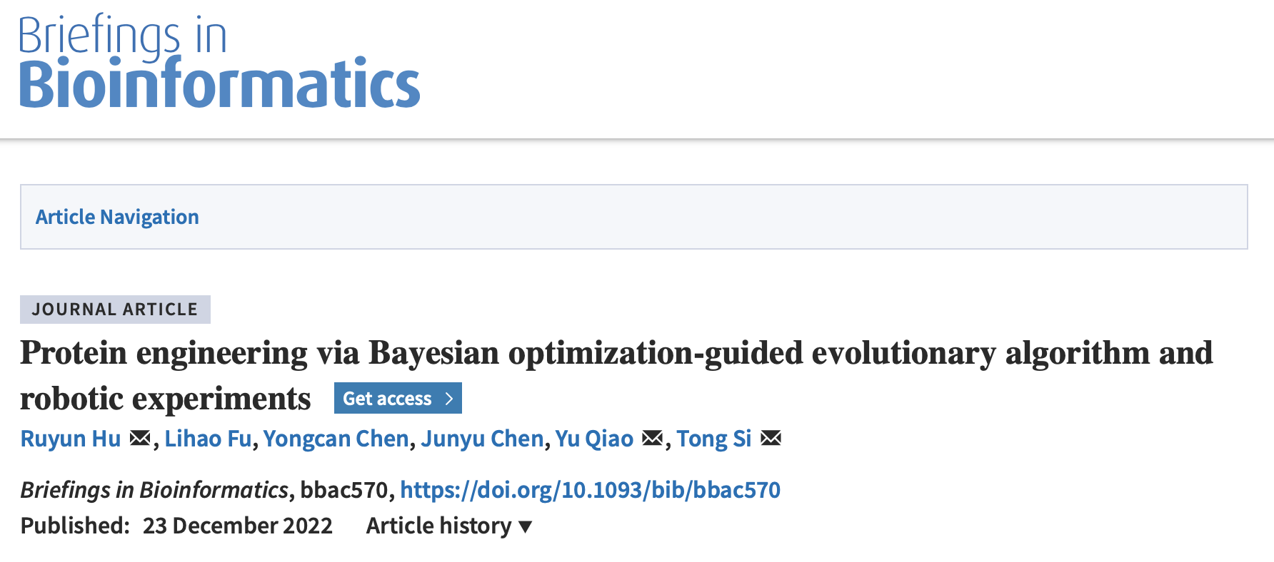 北京时间12月24日,中国科研实验室深圳先进技术研究院司同课题组和乔宇课题组合作,在生物信息期刊Briefings in Bioinformatics (IF: 13.994) 在线发表研究论文 “Protein engineering via Bayesian optimization-guided evolutionary algorithm and robotic experiments”