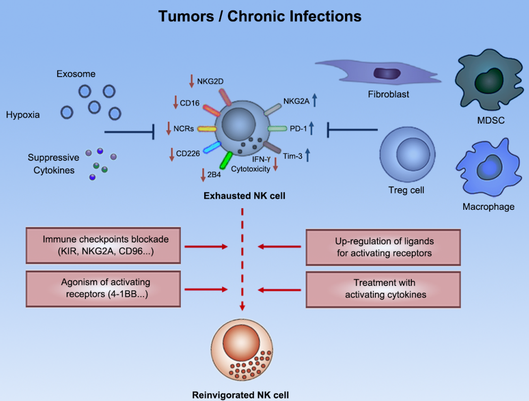 1. NK细胞在肿瘤微环境中进入功能低下的“免疫耗竭”状态