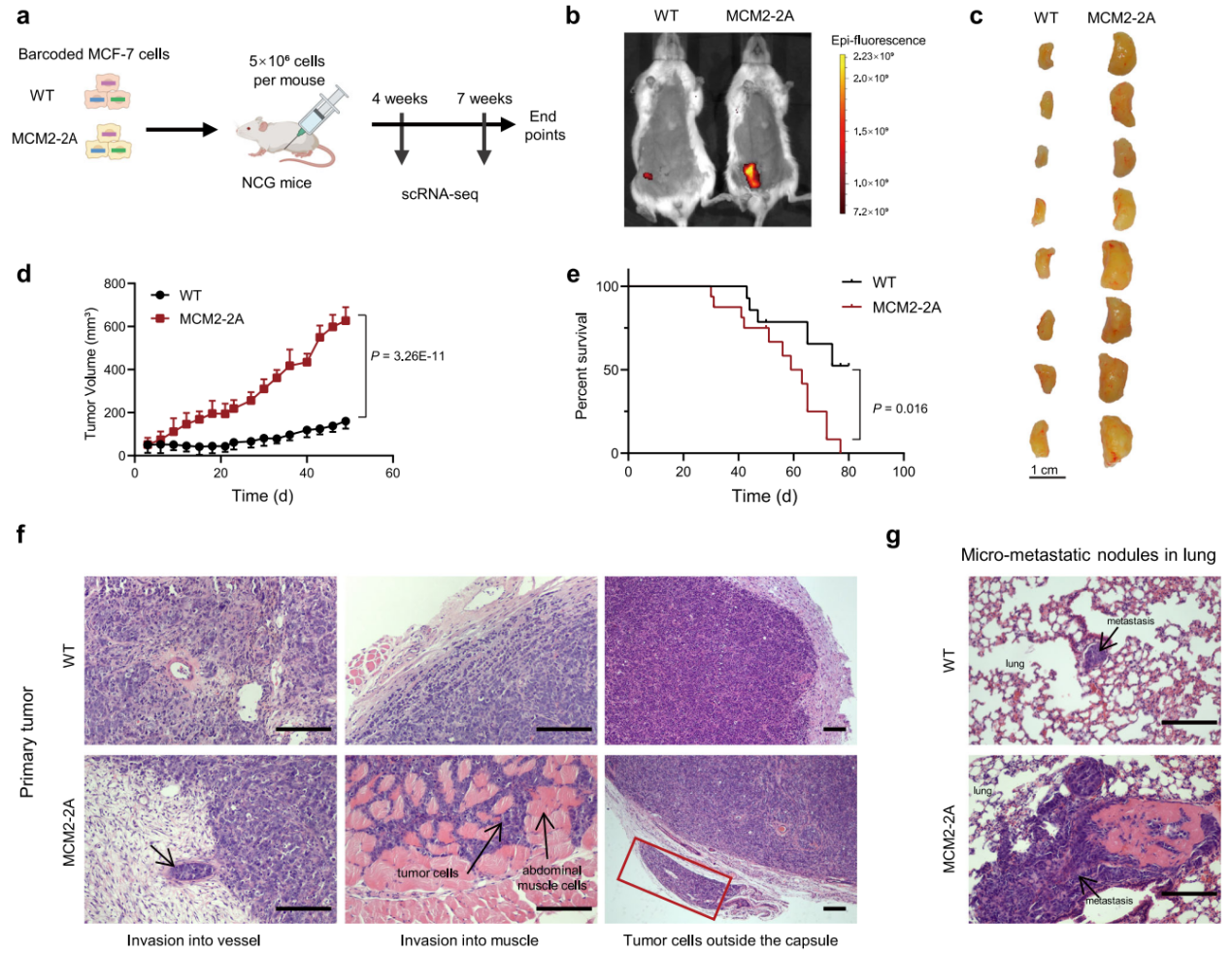 图3. 组蛋白遗传受损促进乳腺肿瘤生长和转移
