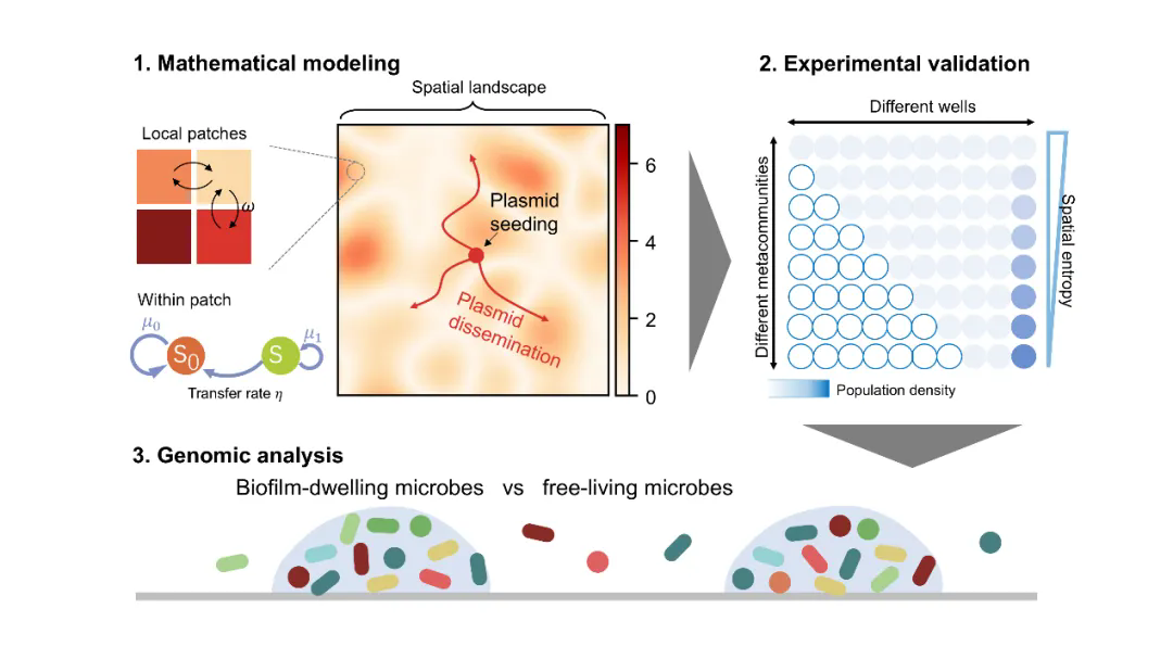 5月1日,王腾研究员课题组在Molecular Systems Biology上发表了题为"Spatial entropy drives the maintenance and dissemination of transferable plasmids"的研究论文。该工作首次将物理学中“熵”的概念引入微生物生态学,揭示了空间结构驱动基因水平转移的普适机制。