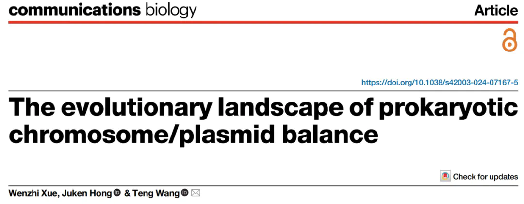 此前不久,王腾团队在Communications Biology上发表了题为“The evolutionary landscape of prokaryotic chromosome/plasmid balance”的研究论文。该工作解析了原核生物染色体/质粒平衡的多层次选择机制,为质粒的演化动力提出了全新的理论框架。