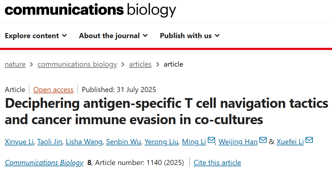 一、揭示抗原特异性T细胞在肿瘤共培养环境中的导航策略与肿瘤免疫逃逸机制(Communications Biology)