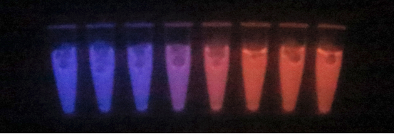 随后,团队将蛋白探针集成在一台比手机略大的检测盒,用户只需自取一滴血液,将其与反应液融合放入检测盒。最后,用相机拍照,就能得到一张“红蓝相间”的照片。“探针与NAD+结合时发红光,不结合时发蓝光。因此,红蓝光的比例是NAD+浓度的反映。於邱黎阳说。