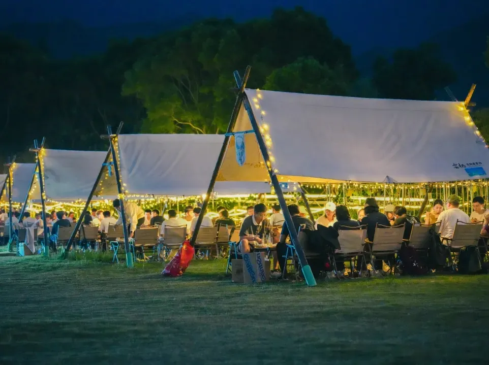 夜幕降临,同学们分组围坐在天幕里,自己动手享用美味的火锅和烧烤大餐,集体劳动不仅加深了彼此间的情谊,也让大家体会到了团队合作带来的乐趣。